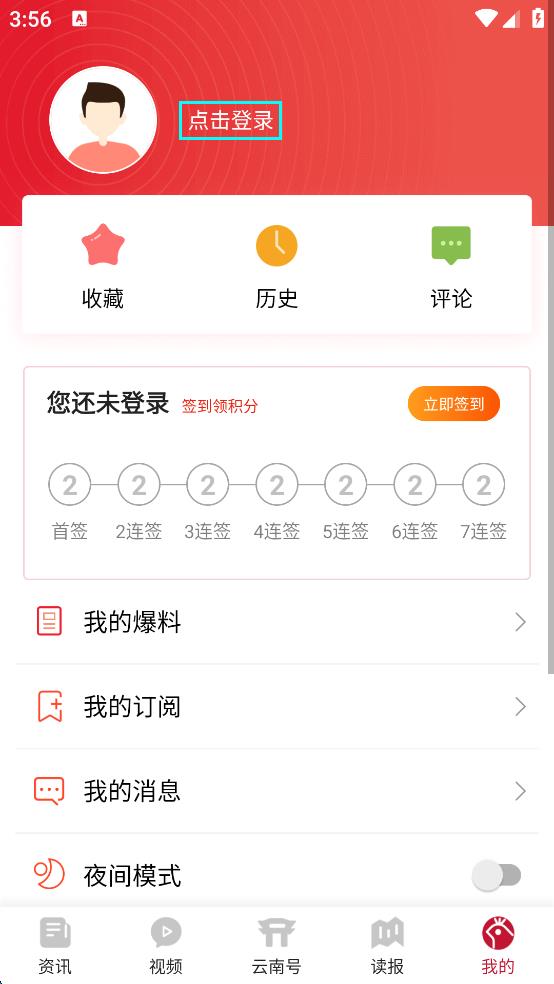 3、在個(gè)人頁面,點(diǎn)擊上方點(diǎn)擊登錄按鈕,進(jìn)入登錄界面。