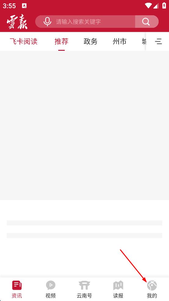 2、進(jìn)入云報(bào)APP主界面后,點(diǎn)擊右下角我的選項(xiàng),進(jìn)入個(gè)人相關(guān)頁面。