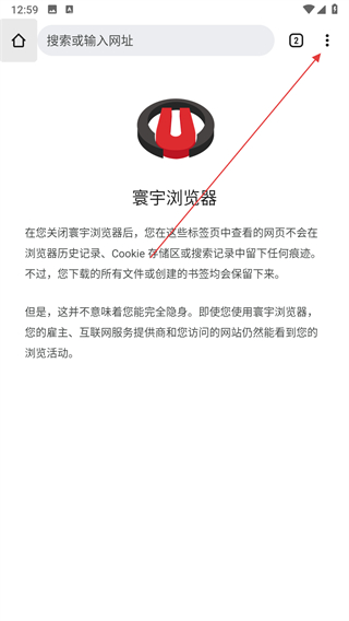 1、打開寰宇瀏覽器,點(diǎn)擊三點(diǎn)菜單按鈕。