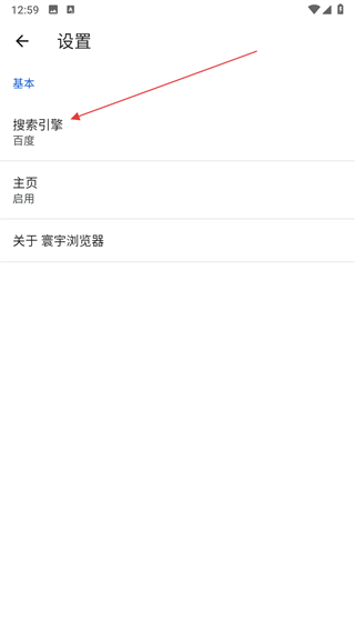 3、在設(shè)置頁面,點(diǎn)擊搜索引擎選項(xiàng)。