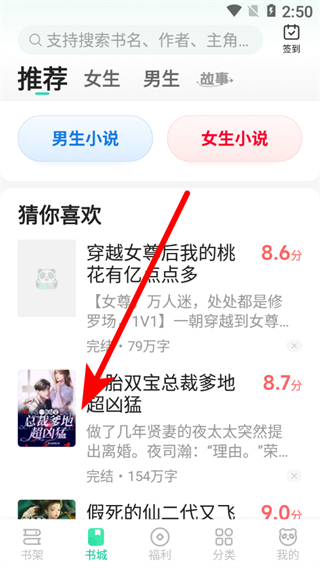 1、在熊貓小說(shuō)書城頁(yè)面,點(diǎn)擊想要調(diào)整字體大小的小說(shuō),進(jìn)入小說(shuō)詳情頁(yè)面。