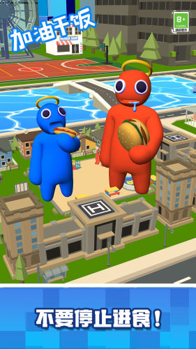 加油干飯手游是一款不停吃吃吃的休閑益智游戲,玩家在游戲中將控制一個(gè)橡膠人,在廣闊的地圖上不斷吃著那些散落的食物,每一關(guān)都有時(shí)間限制,所以玩家必須在規(guī)定的時(shí)間里盡可能多的吃到食物,讓自己變得越來越大,在倒計(jì)時(shí)結(jié)束后用自己的身體碾碎敵人。