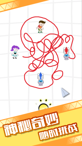 啊啊我憋不住啦手機版是一款搞笑的畫線上廁所游戲,玩家需要拯救快憋壞了的人,幫助他們尋找前往馬桶的路線,非常的搞笑,游戲操作簡單,拖動手指畫線即可,但是這非常考驗玩家的思維和想象力,因為不能讓兩人在上廁所的途中撞到一起,玩家必須仔細設(shè)計路線。
