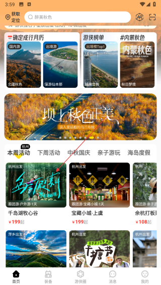 1、打開游俠客app,在首頁或分類板塊找到心儀旅游項目,點擊進入項目詳情頁面。