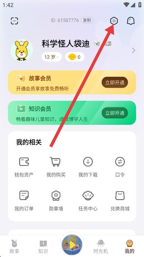 2、在我的頁(yè)面中,點(diǎn)擊右上角的設(shè)置圖標(biāo)。