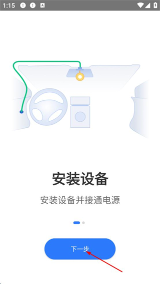 2、在安裝設(shè)備頁(yè)面,完成設(shè)備安裝并接通電源后,點(diǎn)擊下一步。