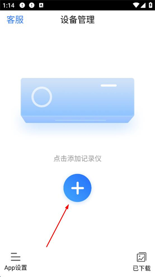 1、打開(kāi)記錄儀管理APP,點(diǎn)擊設(shè)備管理頁(yè)面的加號(hào)按鈕。