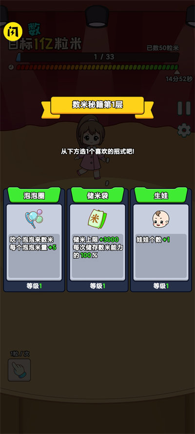 1、還有各種輔助技能,這些技能可以讓玩家在游戲中更加容易數(shù)到足夠數(shù)量的米粒,讓我們過程更加的高效。