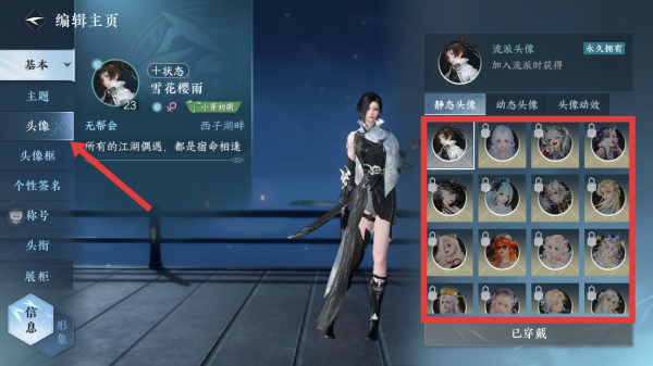 3、進(jìn)入頭像選項(xiàng),在右側(cè)會(huì)顯示出可選擇的頭像,選擇您想要更換的頭像。