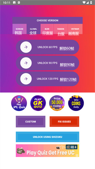 1、通過本站下載,打開后分別選擇【GLOBAL】(全球模式)和【UNLOCK 90 FPS】(解鎖90幀)這兩個(gè)選項(xiàng);