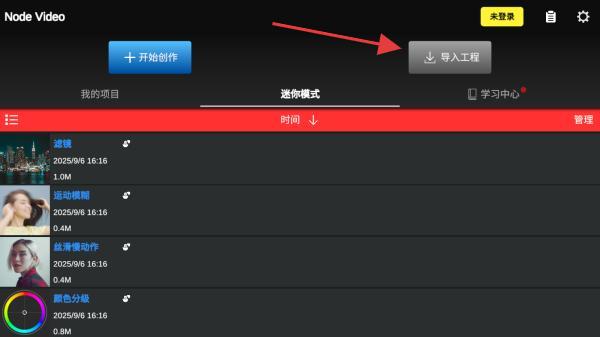 1、打開NodeVideoAPP,點(diǎn)擊主界面的↓導(dǎo)入工程的按鈕。