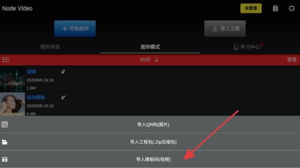 2、點(diǎn)擊后會(huì)展開菜單欄,點(diǎn)擊導(dǎo)入模版碼視頻的功能按鈕。