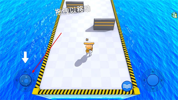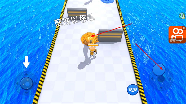 1、通過左側(cè)虛擬搖桿操控角色移動(dòng),在賽道上躲避障礙,向前推進(jìn)。