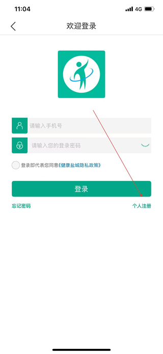 3、在登錄頁面點擊個人注冊,進(jìn)入注冊信息填寫頁面。
