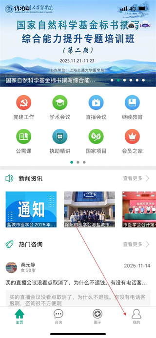 1、打開健康鹽城APP,點擊底部我的,進(jìn)入個人頁面。