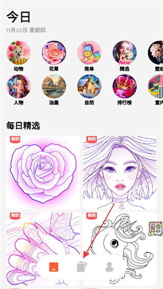 3、進(jìn)入分類后,瀏覽并選擇喜歡的填色圖案,點(diǎn)擊進(jìn)入填色界面。