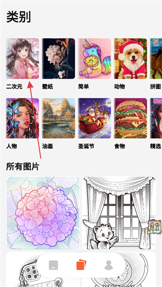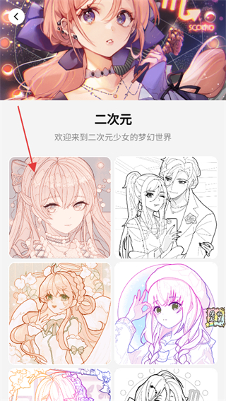2、在主界面選擇感興趣的類別,喜歡二次元風(fēng)格就點(diǎn)擊二次元分類。