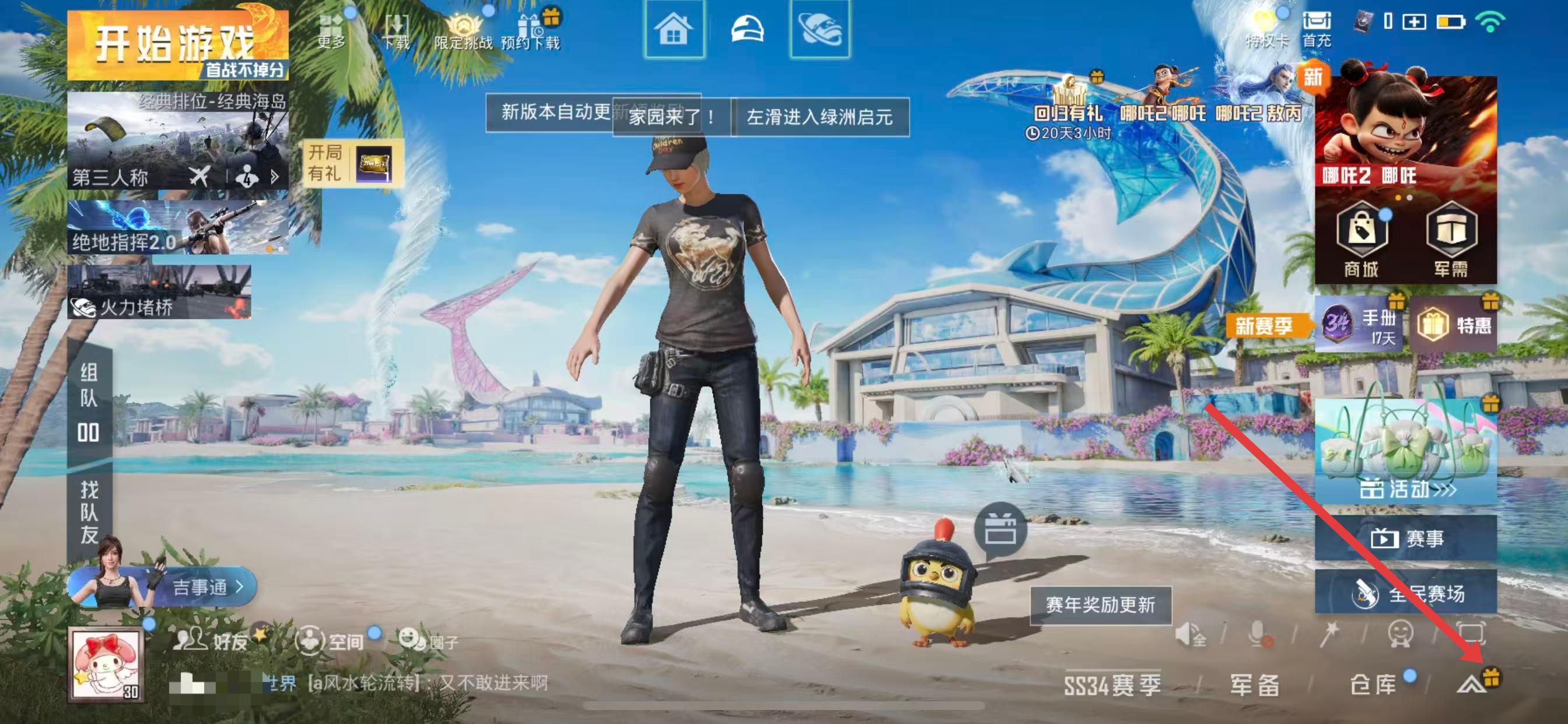 1、在游戲主界面,點擊右下角的展開按鈕,打開隱藏的功能菜單。