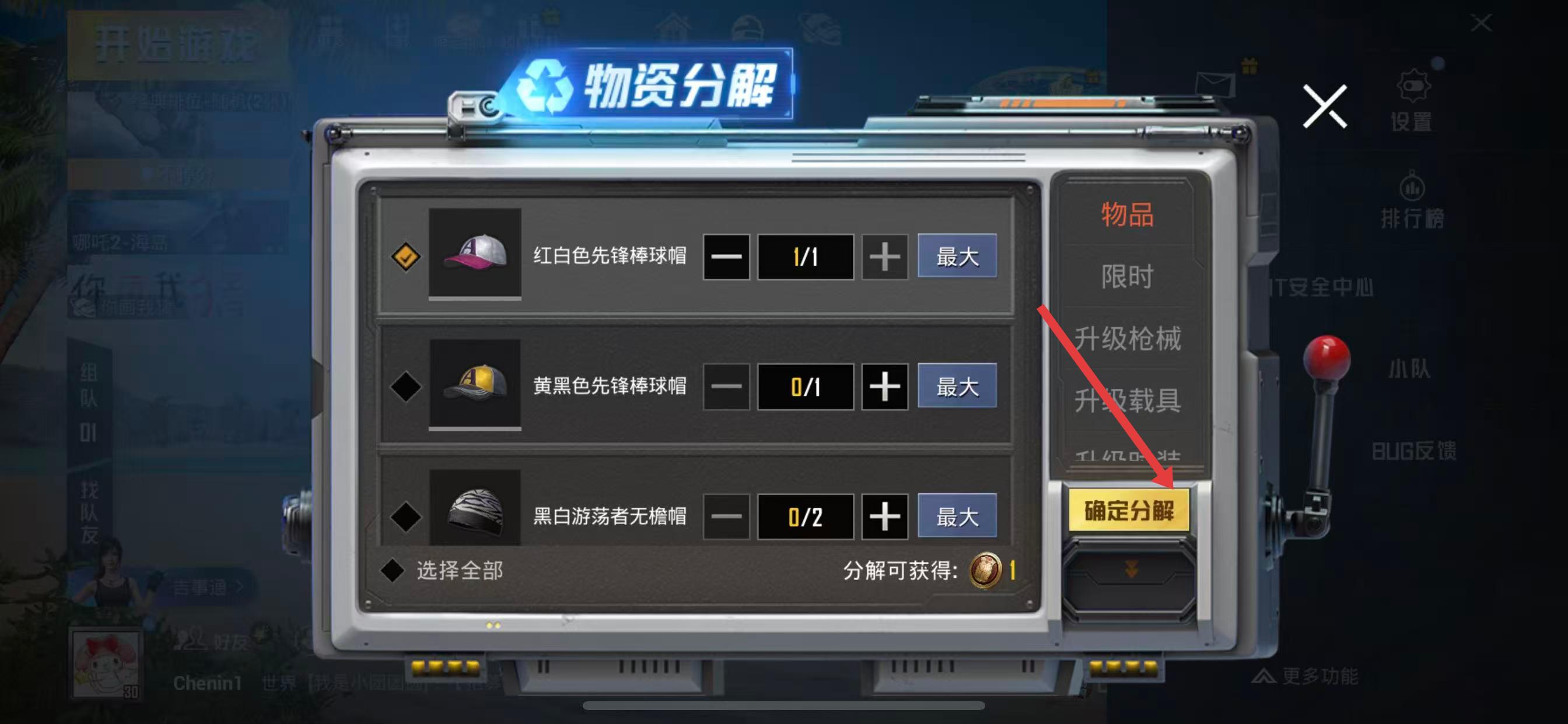 4、選擇好要分解的物品及其數(shù)量后,點擊右側(cè)的確定分解按鈕,即可完成物品分解操作。