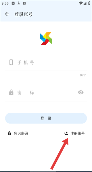 3、在登錄賬號界面中,如果沒有賬號可以點(diǎn)擊注冊賬號按鈕,進(jìn)行注冊。