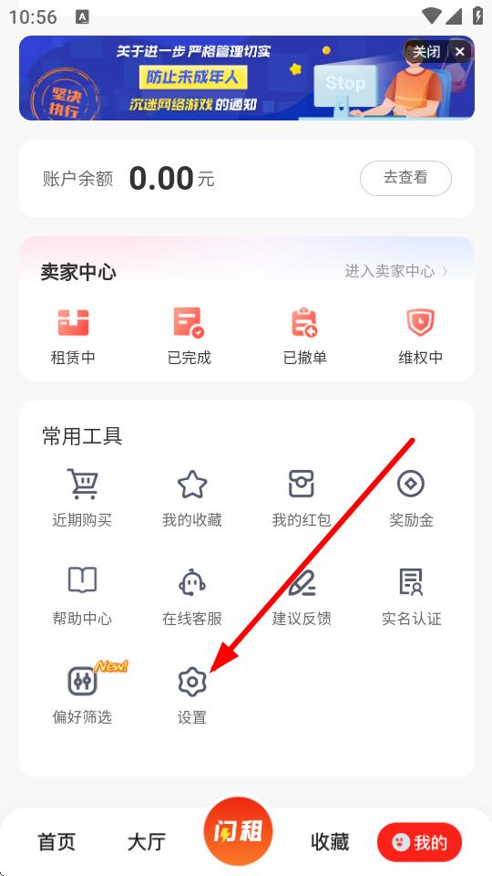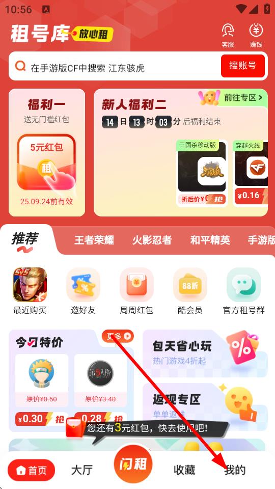 1、打開租號(hào)酷APP,點(diǎn)擊底部導(dǎo)航欄中的我的。