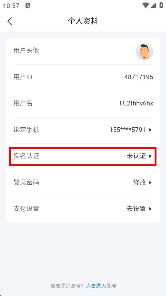 4、在個(gè)人資料頁(yè)面中,找到實(shí)名認(rèn)證選項(xiàng)并點(diǎn)擊。