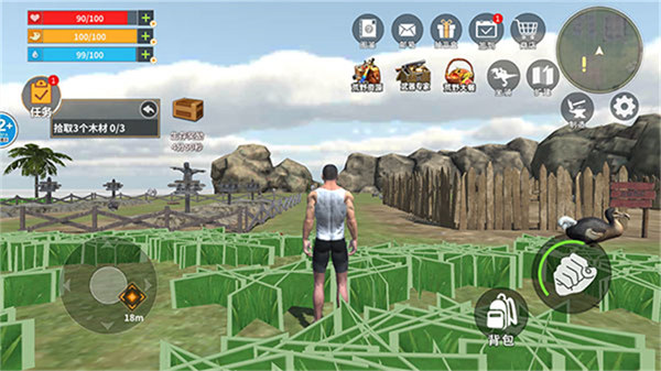 2、進入到游戲里面就可以拖動左下角的輪盤去進行移動的操作,右邊擁有背包和攻擊的按鈕;