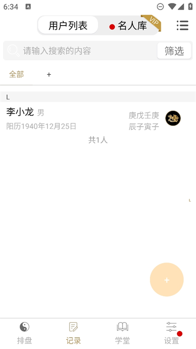 2、在記錄中可以看到自己添加的一些用戶記錄,方便下次可以繼續(xù)進行排盤不會重復輸入;