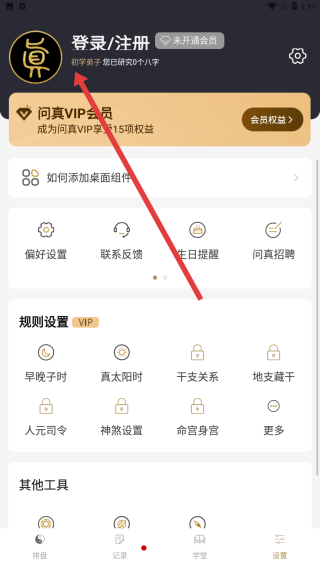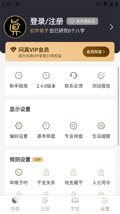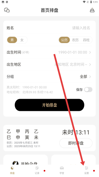 1、在首頁排盤界面點擊底部設置圖標,進入設置頁面查看功能選項。