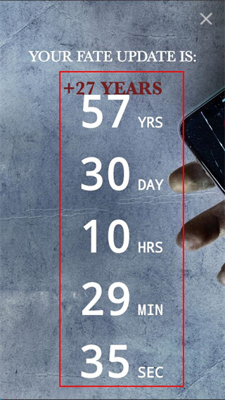 4、觀看完成后,界面顯示命運(yùn)更新信息,可查看增加的年限及具體倒計(jì)時數(shù)據(jù)。