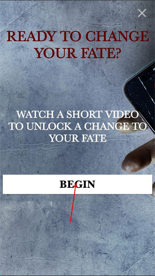 3、在提示界面,點(diǎn)擊“BEGIN”按鈕,觀看短視頻以解鎖命運(yùn)改變機(jī)會。