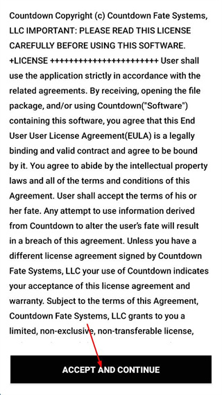 1、點(diǎn)擊“ACCEPT AND CONTINUE”按鈕,進(jìn)入倒計(jì)時界面。