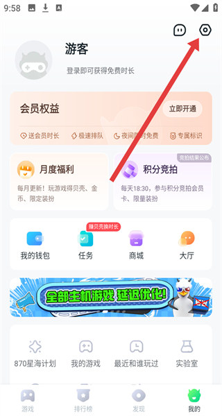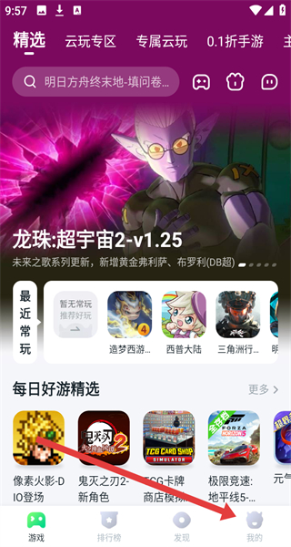 1、進(jìn)入到應(yīng)用首頁(yè)后,可以點(diǎn)擊下方排行榜按鈕,進(jìn)入查看最新游戲。