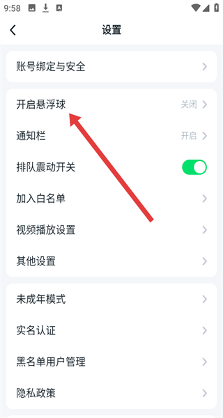 3、在設(shè)置頁(yè)面中,找到并點(diǎn)擊開啟懸浮球選項(xiàng),進(jìn)行設(shè)置。