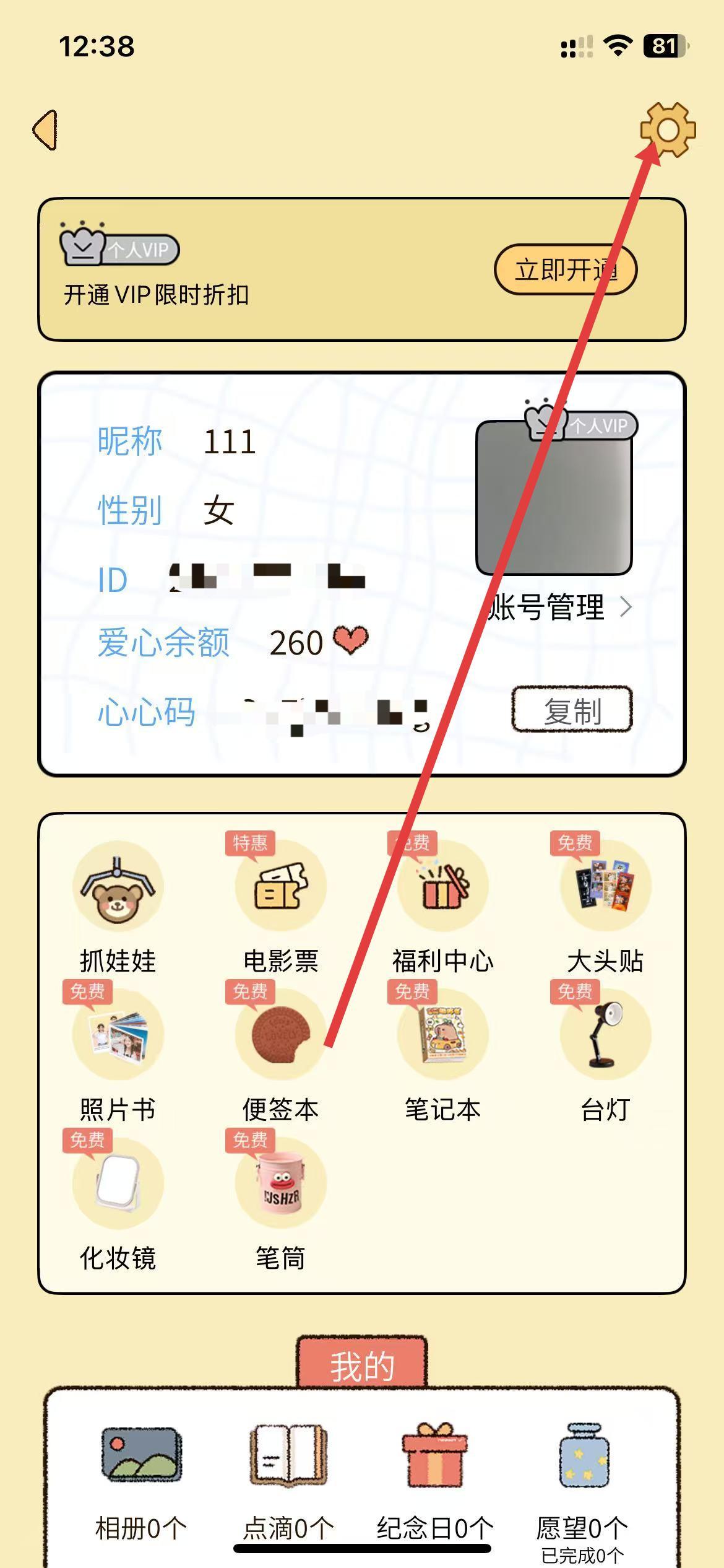2、在我的頁面中,點(diǎn)擊右上角的齒輪狀設(shè)置圖標(biāo)。