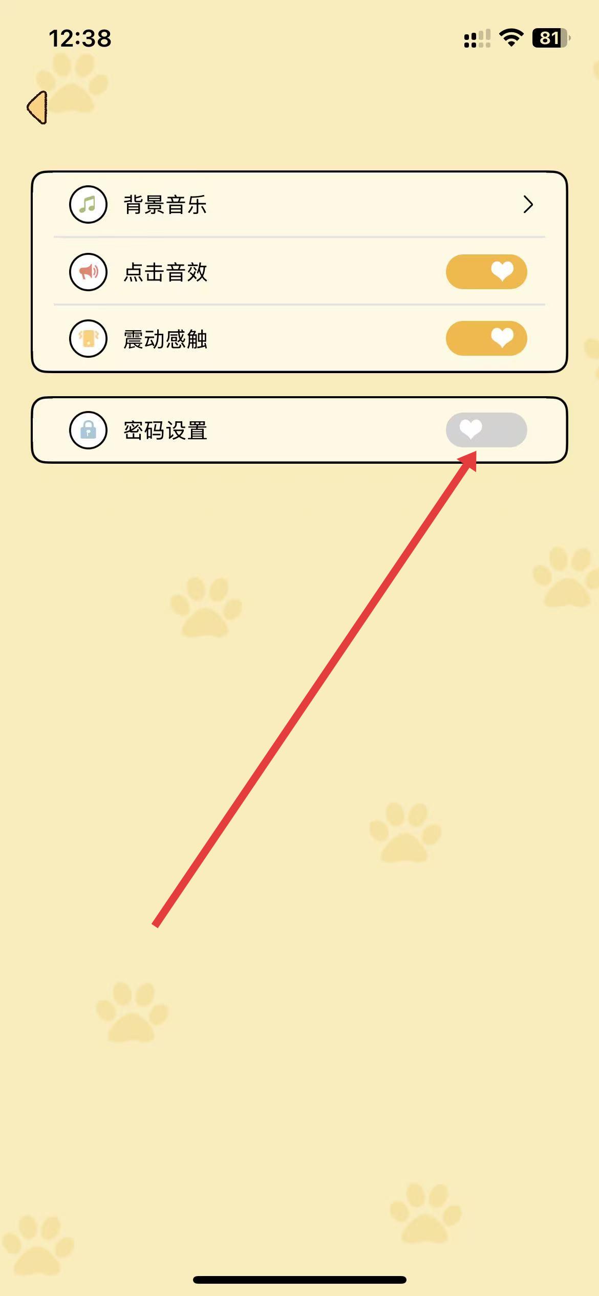 3、找到并點(diǎn)擊密碼設(shè)置選項(xiàng),將其右側(cè)的開關(guān)按鈕開啟。