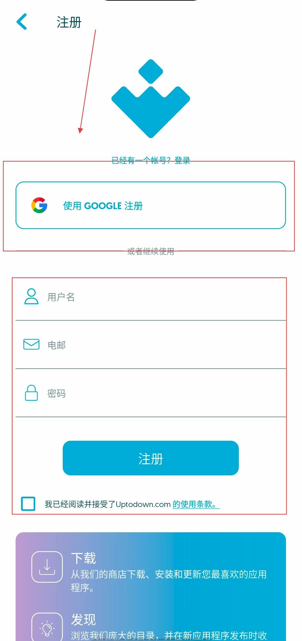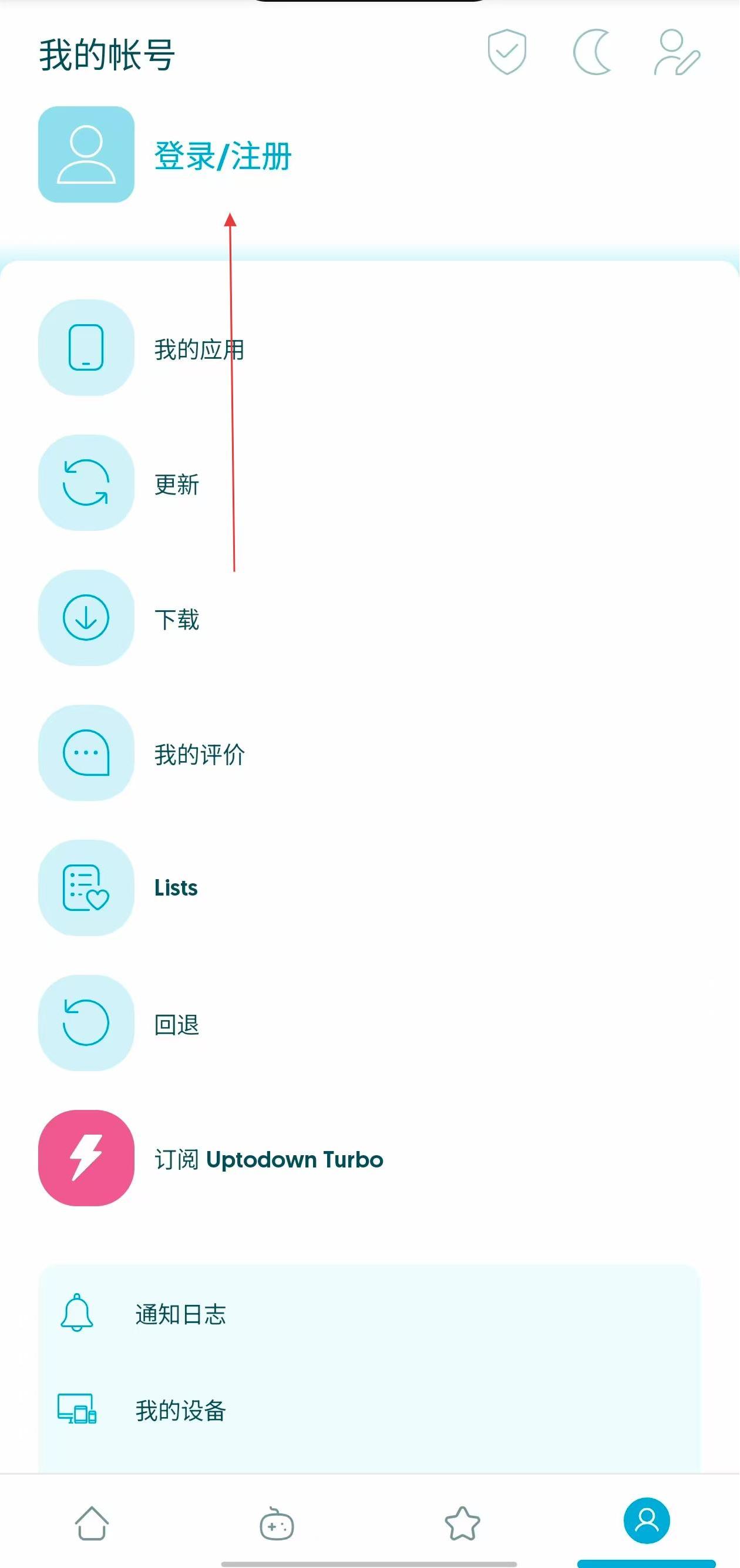 1、打開Uptodown應(yīng)用,點(diǎn)擊界面右下角的個(gè)人中心圖標(biāo),進(jìn)入我的帳號(hào)頁(yè)面。
