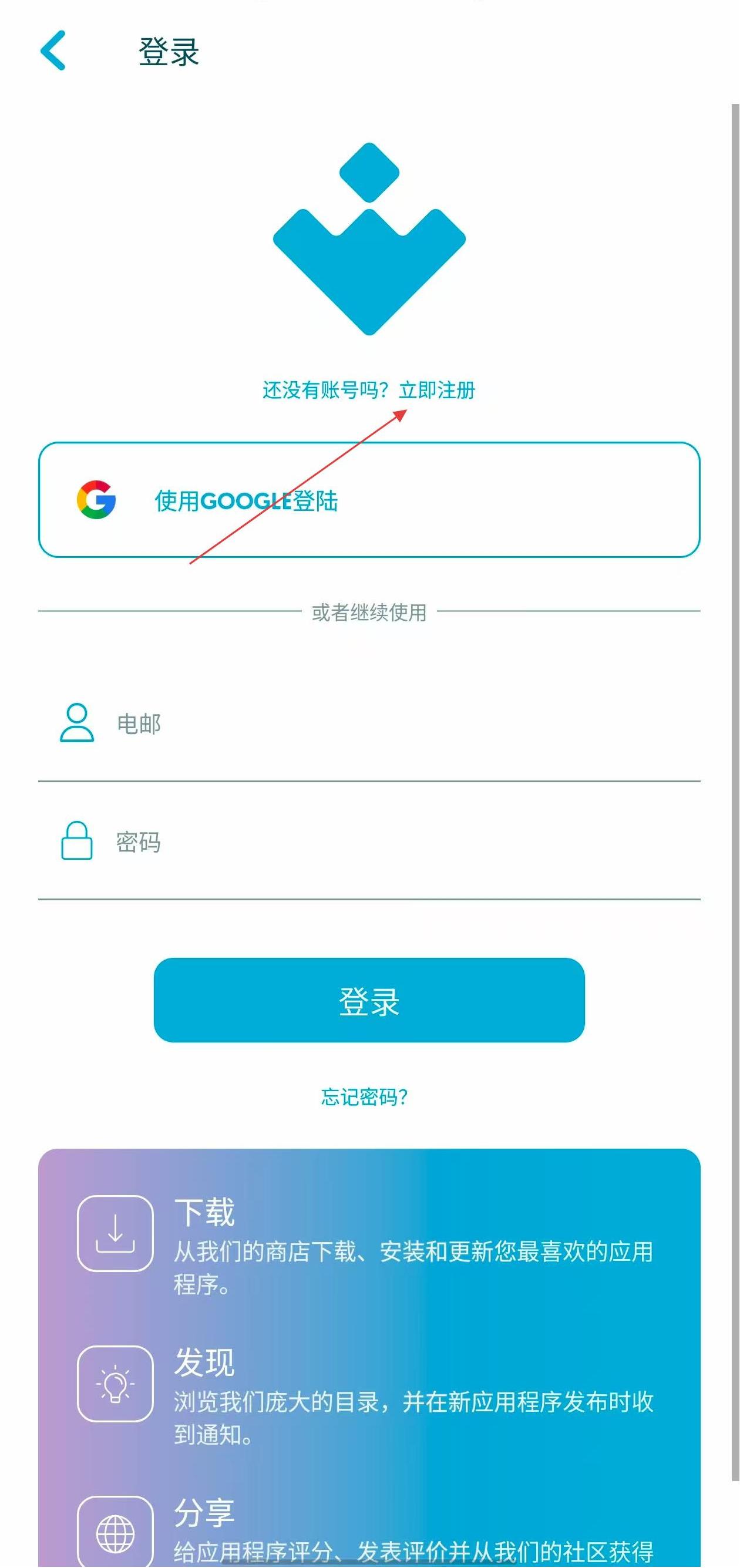 3、在登錄或注冊(cè)界面,若沒有賬號(hào),點(diǎn)擊立即注冊(cè)選項(xiàng),進(jìn)入注冊(cè)頁(yè)面。