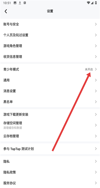 3、設(shè)置頁(yè)面點(diǎn)擊“青少年模式”選項(xiàng),跳轉(zhuǎn)進(jìn)入青少年模式頁(yè)面。