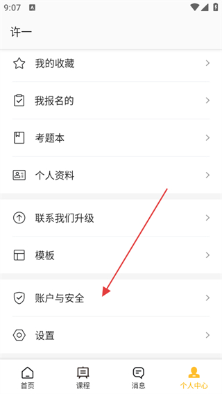 2、在個(gè)人中心頁面,找到并點(diǎn)擊賬戶與安全選項(xiàng)。