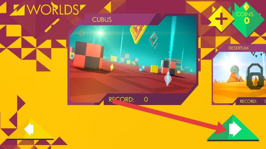 1、打開幾何飛行游戲,在主界面點(diǎn)擊右側(cè)箭頭圖標(biāo),進(jìn)入世界選擇界面。