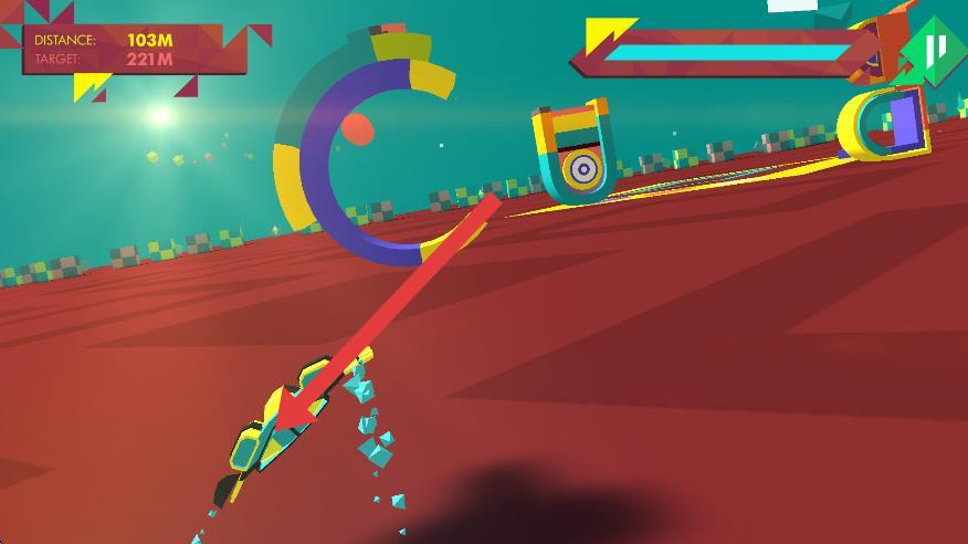 3、通過(guò)操作屏幕來(lái)控制幾何物體的飛行方向,躲避賽道上各種形狀的障礙物。