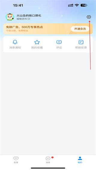 2、在個人中心的頁面內,點擊右上角的設置的功能圖標。