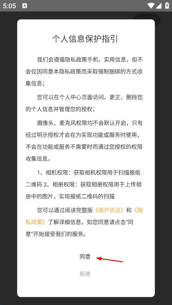 1、打開導(dǎo)嗒嗒,出現(xiàn)個(gè)人信息保護(hù)指引提示框,點(diǎn)擊同意。