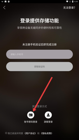 1、在登錄頁點擊賬號密碼登錄選項,切換至賬號密碼輸入界面。