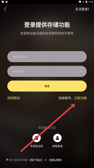2、在賬號密碼登錄頁面點擊沒有賬號,立即注冊按鈕,進入注冊新賬號界面。