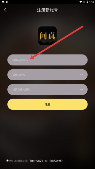 3、在注冊新賬號頁面的請輸入賬號名輸入框填寫賬號,為注冊賬號做準(zhǔn)備。