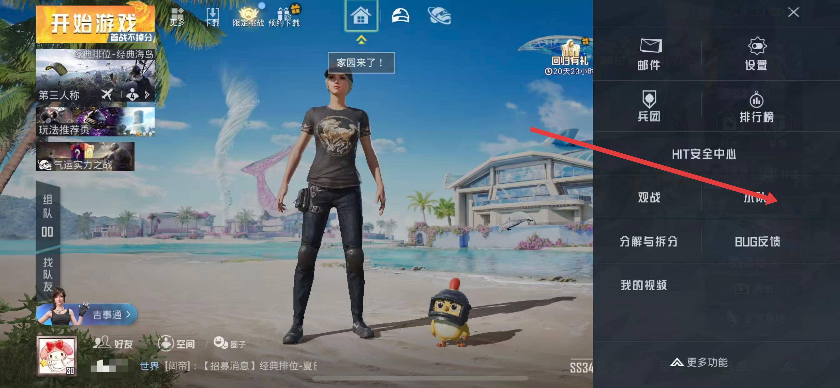 1、在游戲主界面,點擊右下角的展開按鈕,打開隱藏的功能菜單。