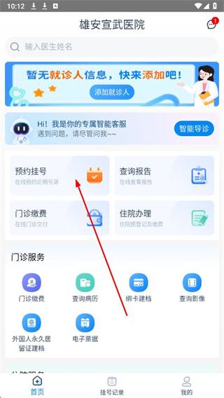 1、打開雄安宣武醫(yī)院APP,在首頁點擊預約掛號。