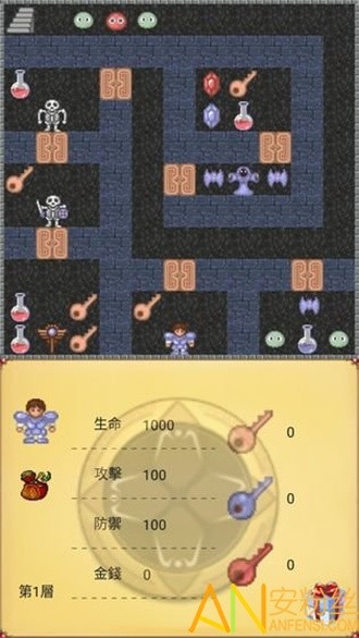 這是一款非常有趣的游戲,你操控的勇者需要不斷地前進(jìn),你需要不斷地開啟一扇又一扇門,擊敗一個(gè)有一個(gè)怪物,最終去往魔塔最高層面對(duì)魔王,這是一場(chǎng)熱血的的試煉之路,只有最聰明勇敢的玩家才能一路向上,成功的擊敗魔王。